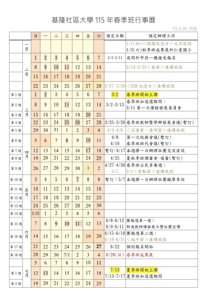 基隆社大年度工作大事紀